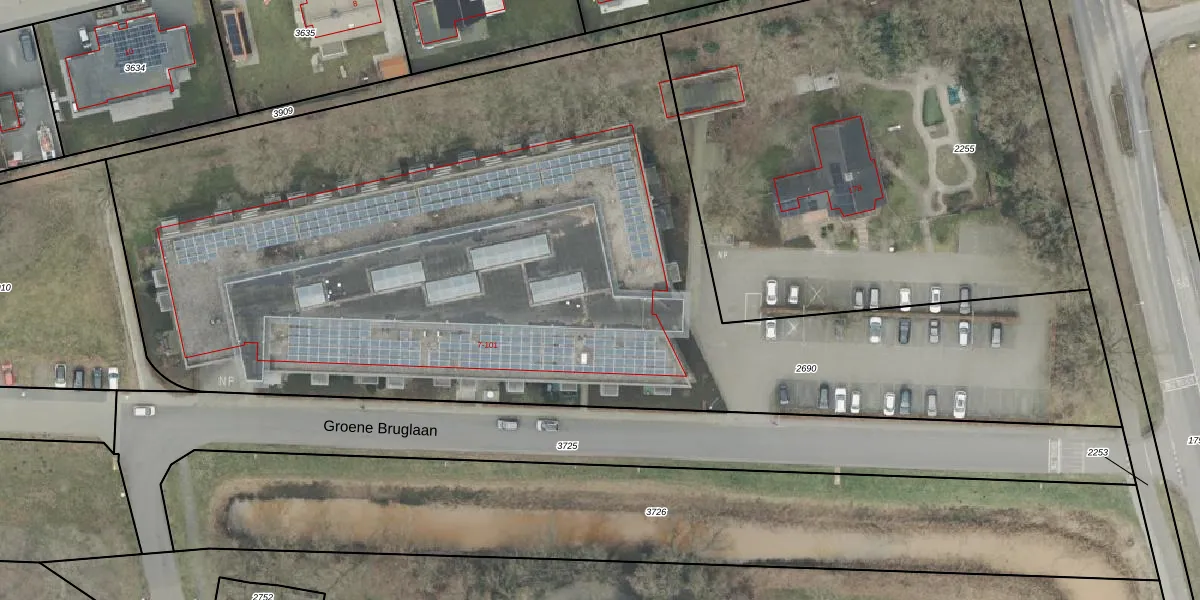 Het perceel waarop Groene Bruglaan 67 staat heeft een oppervlakte van 6100 m². Dit is een zeer groot perceel. De perceeloppervlakte wordt geregistreerd door het Kadaster. Gedetailleerde informatie over de maten van dit perceel kunt u vinden in het rapport Kadastrale kaart met maatvoering van Groene Bruglaan 67.
