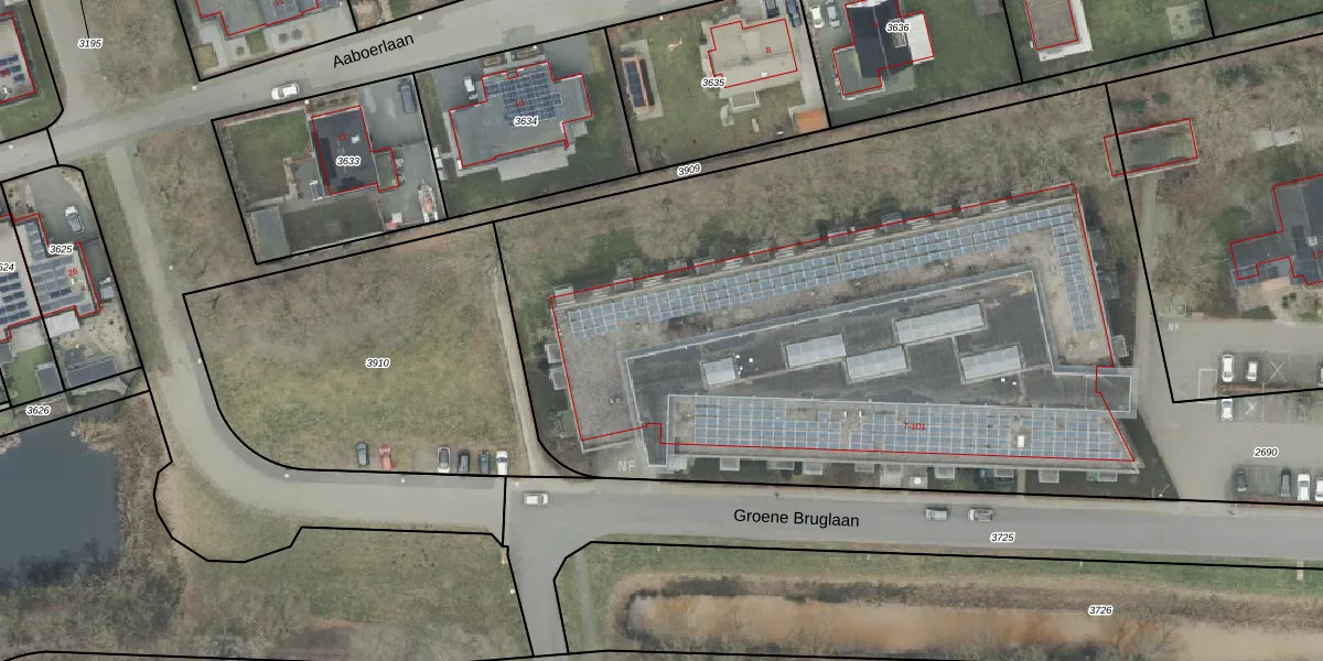 Het perceel waarop Groene Bruglaan 73 staat heeft een oppervlakte van 6100 m². Dit is een zeer groot perceel. De perceeloppervlakte wordt geregistreerd door het Kadaster. Gedetailleerde informatie over de maten van dit perceel kunt u vinden in het rapport Kadastrale kaart met maatvoering van Groene Bruglaan 73.