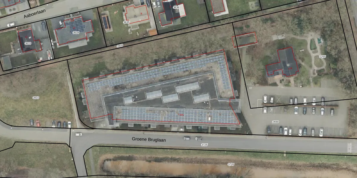 Het perceel waarop Groene Bruglaan 89 staat heeft een oppervlakte van 6100 m². Dit is een zeer groot perceel. De perceeloppervlakte wordt geregistreerd door het Kadaster. Gedetailleerde informatie over de maten van dit perceel kunt u vinden in het rapport Kadastrale kaart met maatvoering van Groene Bruglaan 89.