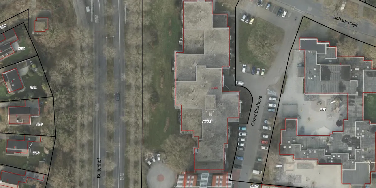 Het perceel waarop Groot Bokhove 29 staat heeft een oppervlakte van 7314 m². Dit is een zeer groot perceel. De perceeloppervlakte wordt geregistreerd door het Kadaster. Gedetailleerde informatie over de maten van dit perceel kunt u vinden in het rapport Kadastrale kaart met maatvoering van Groot Bokhove 29.