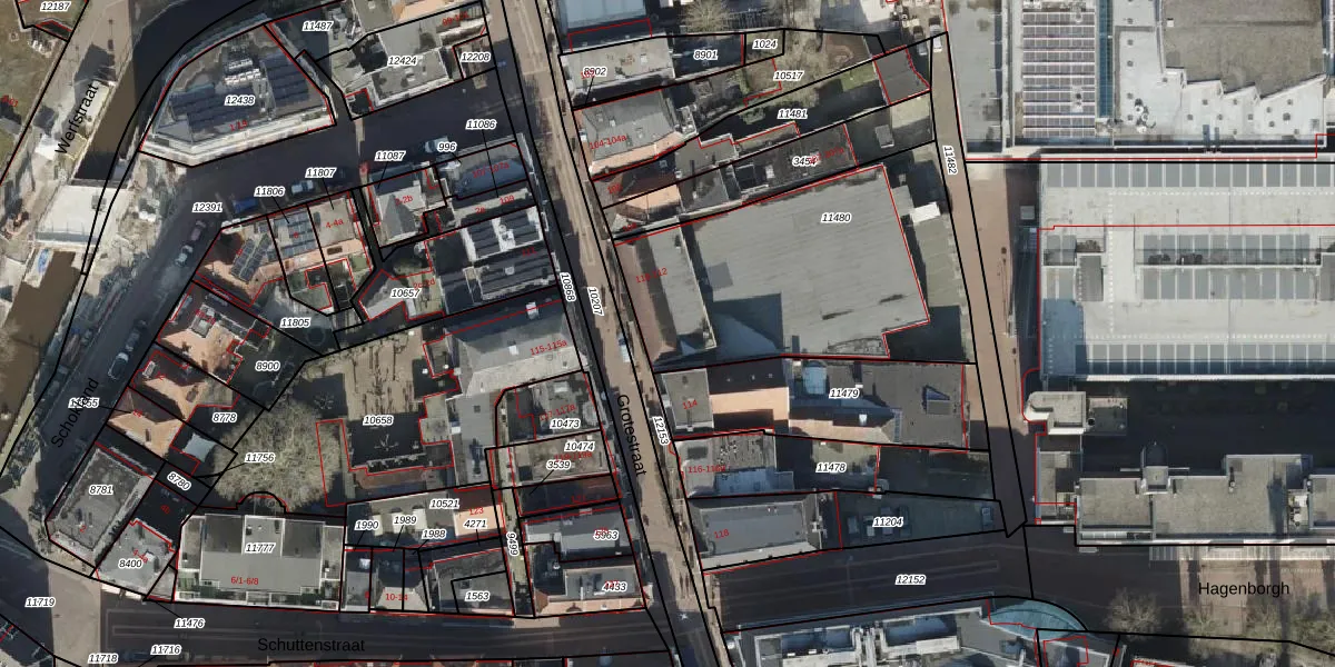 Grotestraat 112 is gelegen op kadastraal perceel AML02B11480. Deze kadastrale aanduiding is uniek en wordt gebruikt door het Kadaster om eigendomsrechten en andere zakelijke rechten vast te leggen. Het perceel maakt onderdeel uit van de kadastrale gemeente Stad-Almelo.