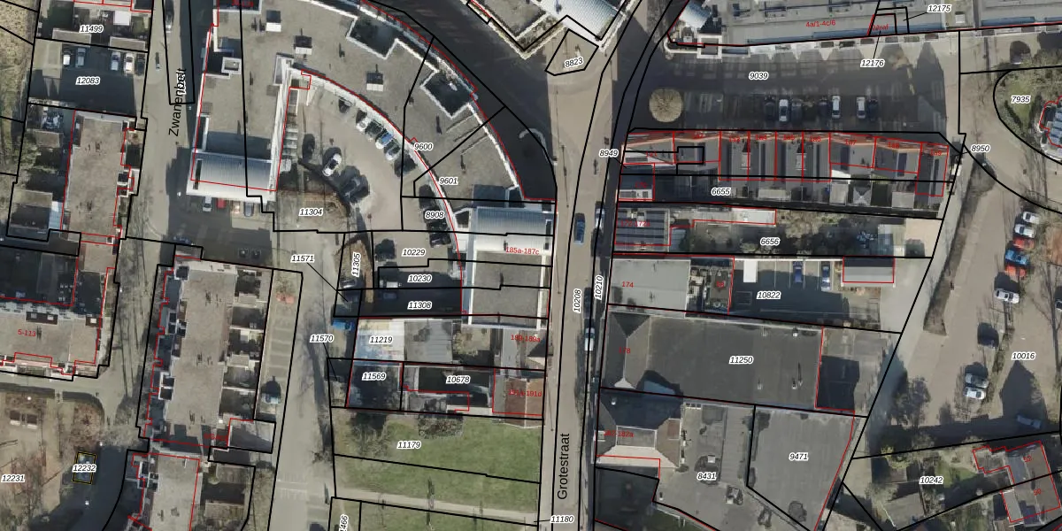 Grotestraat 187-b is gelegen op kadastraal perceel AML02B10230. Deze kadastrale aanduiding is uniek en wordt gebruikt door het Kadaster om eigendomsrechten en andere zakelijke rechten vast te leggen. Het perceel maakt onderdeel uit van de kadastrale gemeente Stad-Almelo.
