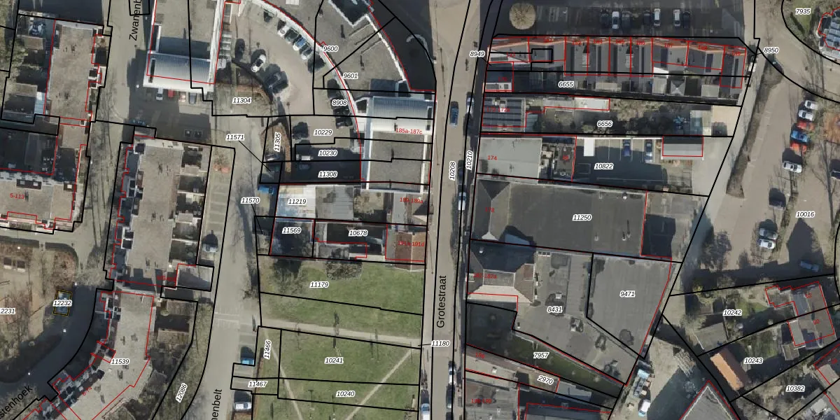 Grotestraat 189 is gelegen op kadastraal perceel AML02B11219. Deze kadastrale aanduiding is uniek en wordt gebruikt door het Kadaster om eigendomsrechten en andere zakelijke rechten vast te leggen. Het perceel maakt onderdeel uit van de kadastrale gemeente Stad-Almelo.