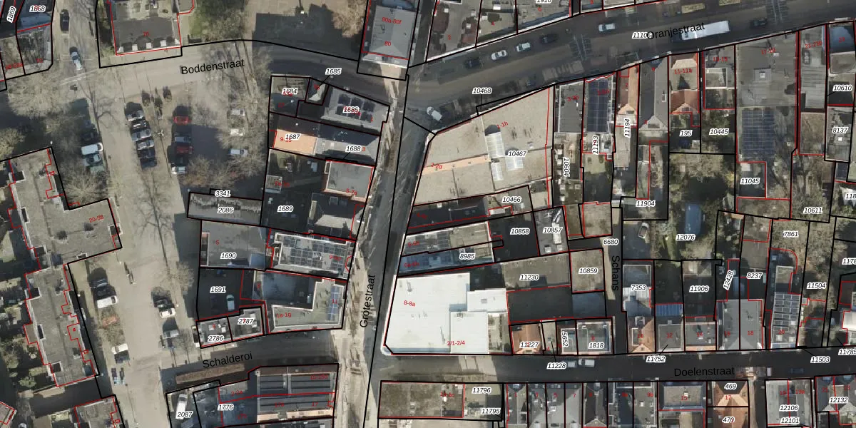 Het perceel waarop Grotestraat 4-a staat heeft een oppervlakte van 182 m². Dit is een middelgroot perceel. De perceeloppervlakte wordt geregistreerd door het Kadaster. Gedetailleerde informatie over de maten van dit perceel kunt u vinden in het rapport Kadastrale kaart met maatvoering van Grotestraat 4-a.