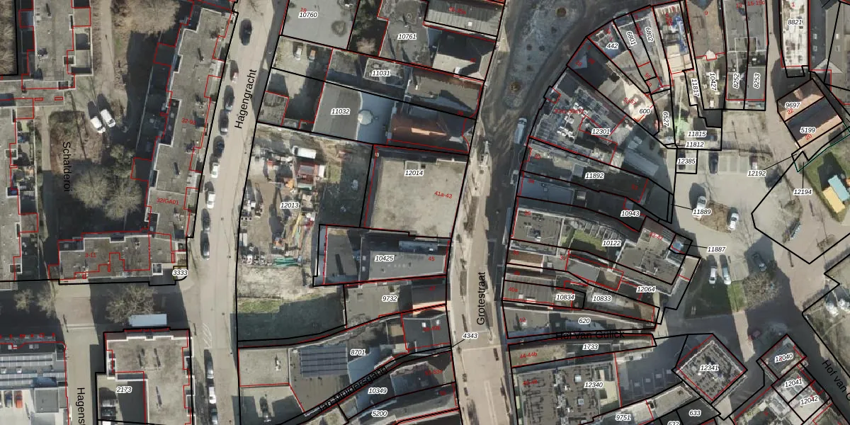 Het perceel waarop Grotestraat 43-d staat heeft een oppervlakte van 438 m². Dit is een groot perceel. De perceeloppervlakte wordt geregistreerd door het Kadaster. Gedetailleerde informatie over de maten van dit perceel kunt u vinden in het rapport Kadastrale kaart met maatvoering van Grotestraat 43-d.