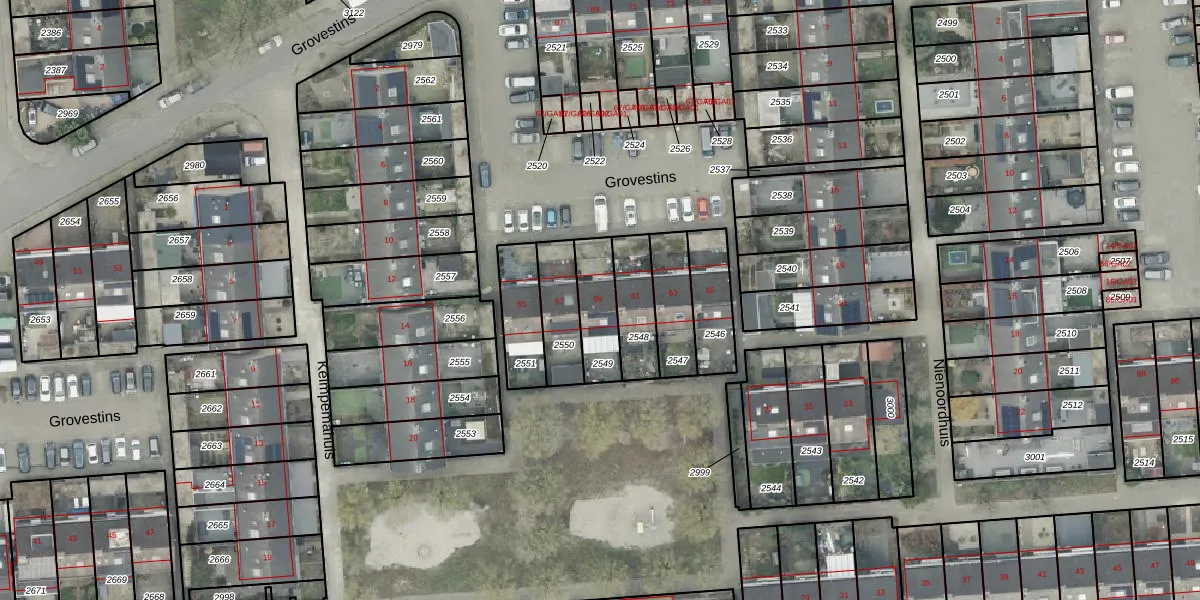 Grovestins 59 is gelegen op kadastraal perceel AML01M2549. Deze kadastrale aanduiding is uniek en wordt gebruikt door het Kadaster om eigendomsrechten en andere zakelijke rechten vast te leggen. Het perceel maakt onderdeel uit van de kadastrale gemeente Ambt-Almelo.
