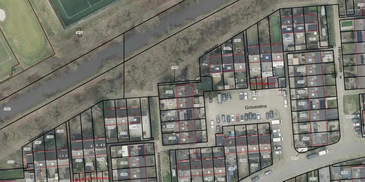Grovestins 72 is gelegen op kadastraal perceel AML01M2400. Deze kadastrale aanduiding is uniek en wordt gebruikt door het Kadaster om eigendomsrechten en andere zakelijke rechten vast te leggen. Het perceel maakt onderdeel uit van de kadastrale gemeente Ambt-Almelo.