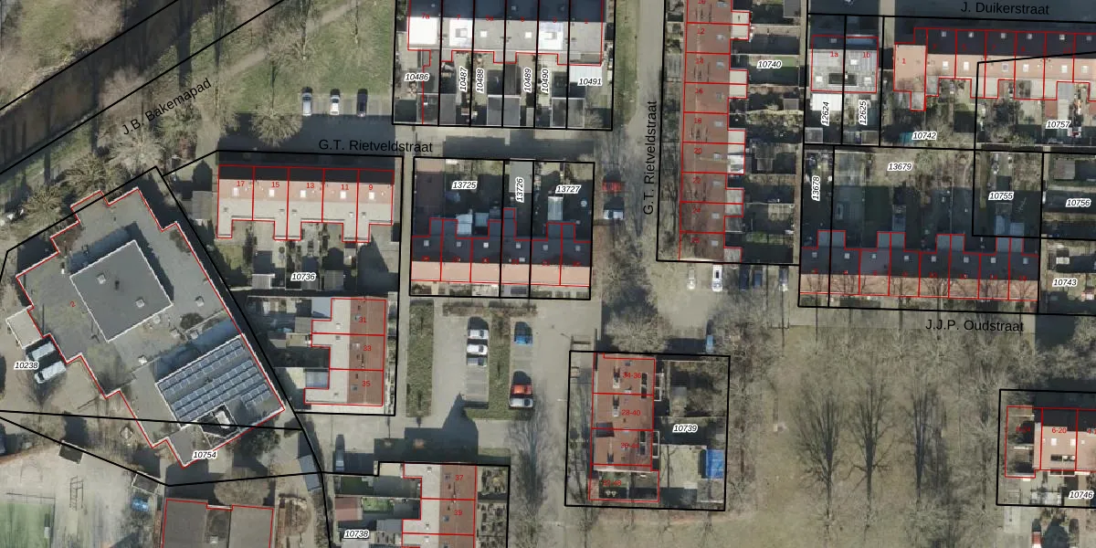 Het perceel waarop G.T. Rietveldstraat 21 staat heeft een oppervlakte van 280 m². Dit is een middelgroot perceel. De perceeloppervlakte wordt geregistreerd door het Kadaster. Gedetailleerde informatie over de maten van dit perceel kunt u vinden in het rapport Kadastrale kaart met maatvoering van G.T. Rietveldstraat 21.