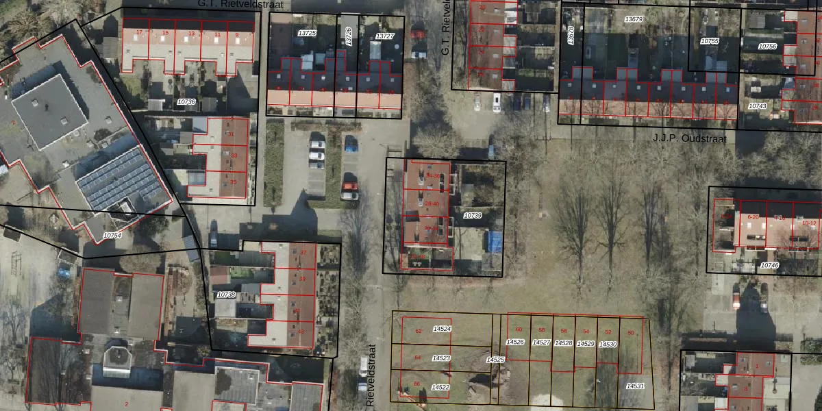 Het perceel waarop G.T. Rietveldstraat 28 staat heeft een oppervlakte van 825 m². Dit is een groot perceel. De perceeloppervlakte wordt geregistreerd door het Kadaster. Gedetailleerde informatie over de maten van dit perceel kunt u vinden in het rapport Kadastrale kaart met maatvoering van G.T. Rietveldstraat 28.
