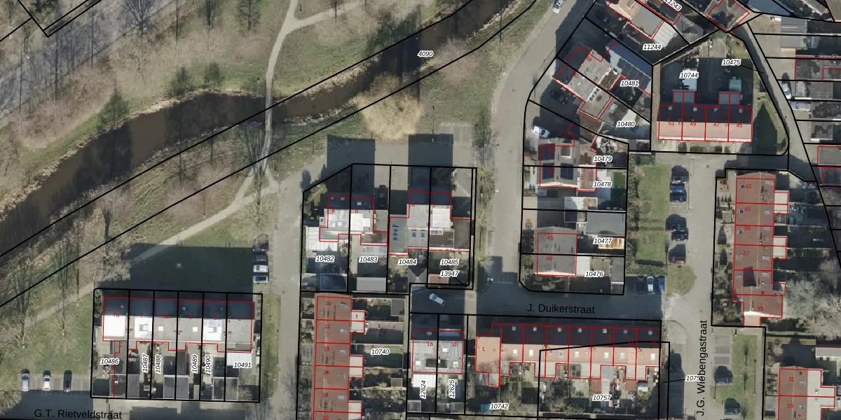 Het perceel waarop G.T. Rietveldstraat 4 staat heeft een oppervlakte van 283 m². Dit is een middelgroot perceel. De perceeloppervlakte wordt geregistreerd door het Kadaster. Gedetailleerde informatie over de maten van dit perceel kunt u vinden in het rapport Kadastrale kaart met maatvoering van G.T. Rietveldstraat 4.
