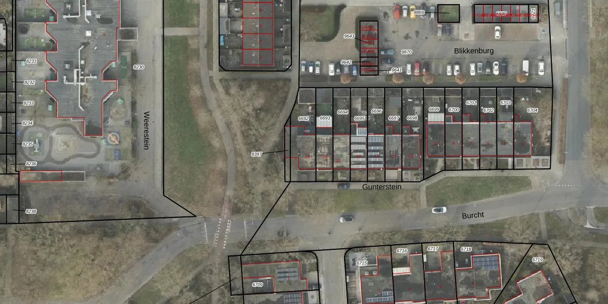 Gunterstein 25 is gelegen op kadastraal perceel AML01B6692. Deze kadastrale aanduiding is uniek en wordt gebruikt door het Kadaster om eigendomsrechten en andere zakelijke rechten vast te leggen. Het perceel maakt onderdeel uit van de kadastrale gemeente Ambt-Almelo.