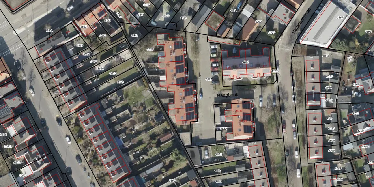Het perceel waarop Haagbeuk 35 staat heeft een oppervlakte van 1200 m². Dit is een zeer groot perceel. De perceeloppervlakte wordt geregistreerd door het Kadaster. Gedetailleerde informatie over de maten van dit perceel kunt u vinden in het rapport Kadastrale kaart met maatvoering van Haagbeuk 35.