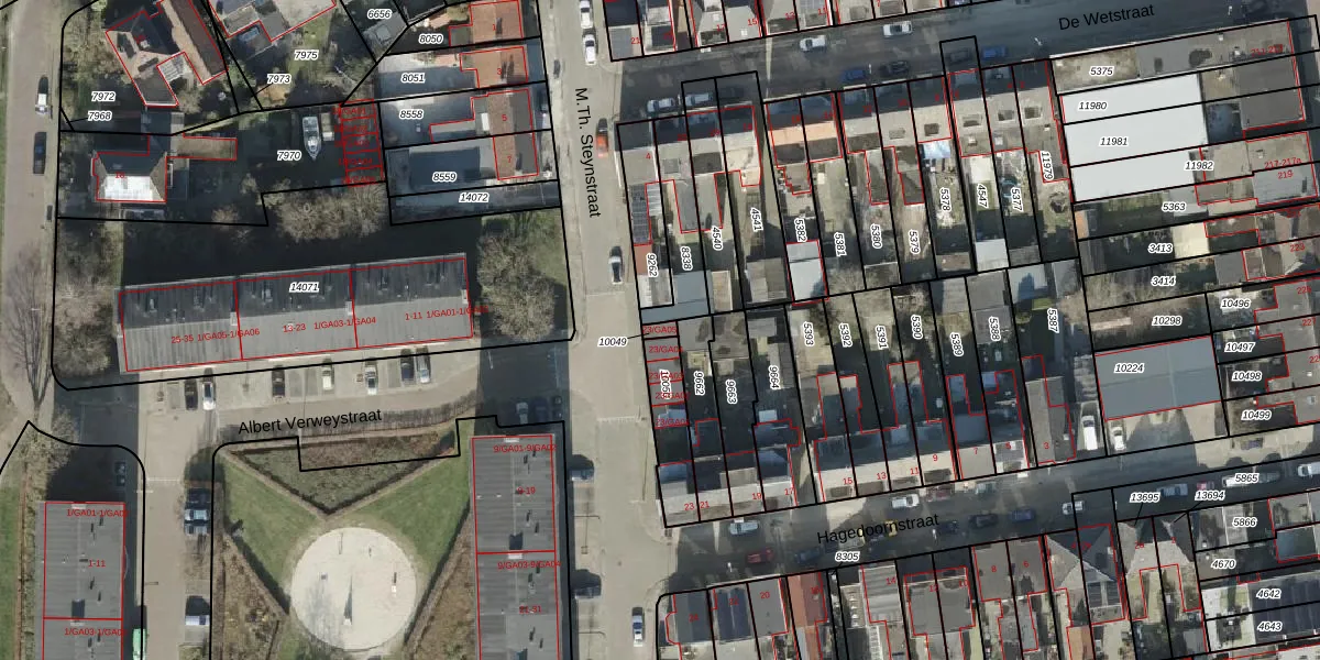 Gebruik de zoekbalk of klik op een perceel voor informatie over de adressen binnen dit perceel.