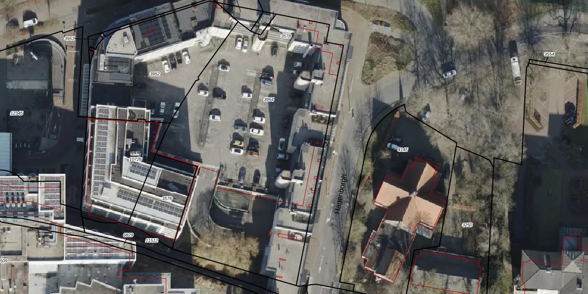 Het perceel waarop Hagenborgh 95 staat heeft een oppervlakte van 3834 m². Dit is een zeer groot perceel. De perceeloppervlakte wordt geregistreerd door het Kadaster. Gedetailleerde informatie over de maten van dit perceel kunt u vinden in het rapport Kadastrale kaart met maatvoering van Hagenborgh 95.