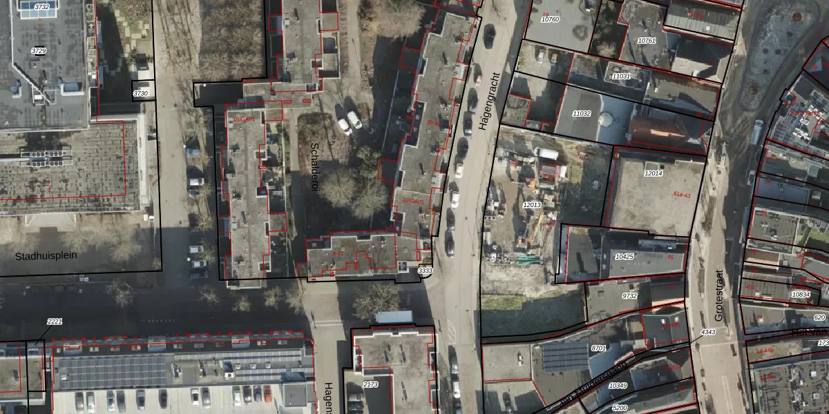 Het perceel waarop Hagengracht 34 staat heeft een oppervlakte van 1,2 ha. Dit is een zeer groot perceel. De perceeloppervlakte wordt geregistreerd door het Kadaster. Gedetailleerde informatie over de maten van dit perceel kunt u vinden in het rapport Kadastrale kaart met maatvoering van Hagengracht 34.