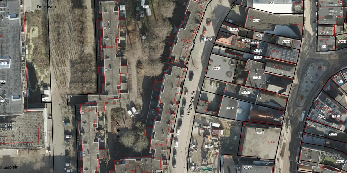 Het perceel waarop Hagengracht 62 staat heeft een oppervlakte van 1,2 ha. Dit is een zeer groot perceel. De perceeloppervlakte wordt geregistreerd door het Kadaster. Gedetailleerde informatie over de maten van dit perceel kunt u vinden in het rapport Kadastrale kaart met maatvoering van Hagengracht 62.