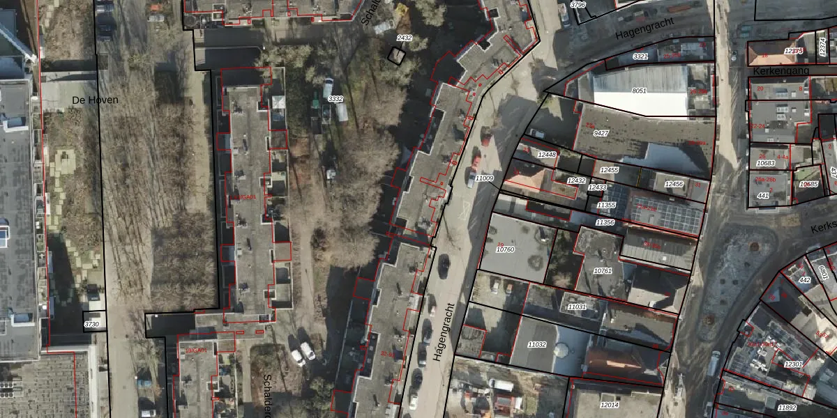 Het perceel waarop Hagengracht 74 staat heeft een oppervlakte van 1,2 ha. Dit is een zeer groot perceel. De perceeloppervlakte wordt geregistreerd door het Kadaster. Gedetailleerde informatie over de maten van dit perceel kunt u vinden in het rapport Kadastrale kaart met maatvoering van Hagengracht 74.