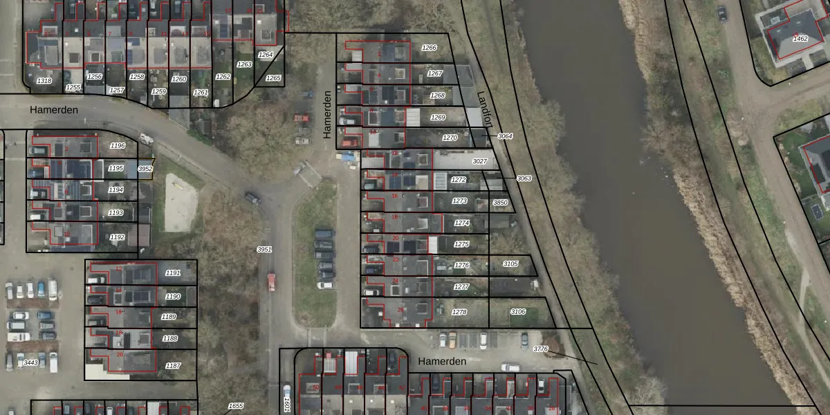 Hamerden 16 is gelegen op kadastraal perceel AML01M1273. Deze kadastrale aanduiding is uniek en wordt gebruikt door het Kadaster om eigendomsrechten en andere zakelijke rechten vast te leggen. Het perceel maakt onderdeel uit van de kadastrale gemeente Ambt-Almelo.