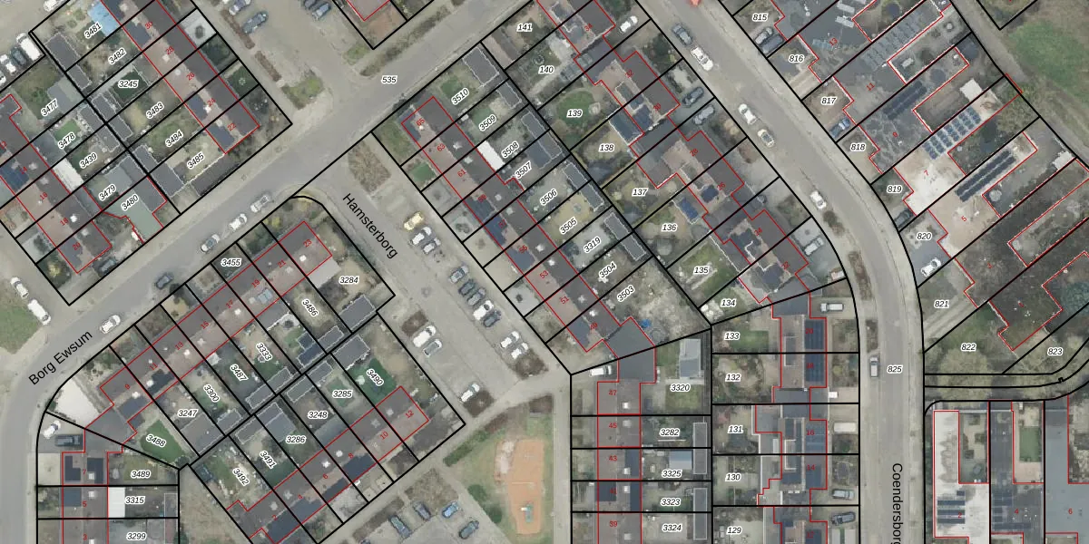 Het perceel waarop Hamsterborg 53 staat heeft een oppervlakte van 155 m². Dit is een middelgroot perceel. De perceeloppervlakte wordt geregistreerd door het Kadaster. Gedetailleerde informatie over de maten van dit perceel kunt u vinden in het rapport Kadastrale kaart met maatvoering van Hamsterborg 53.