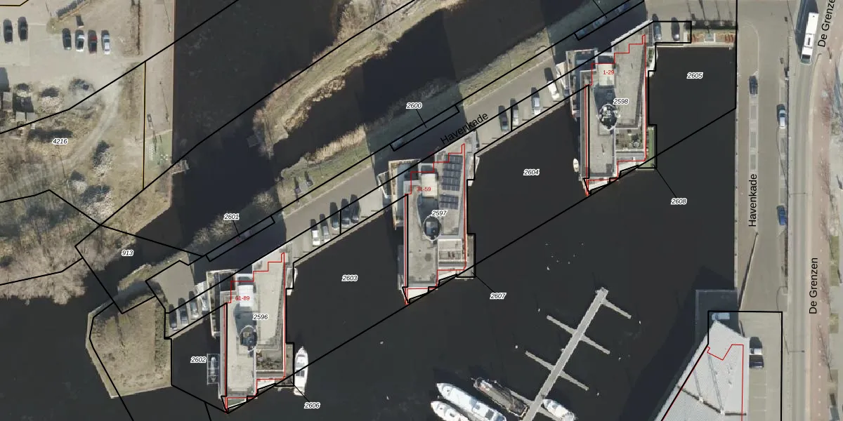 Het perceel waarop Havenkade 41 staat heeft een oppervlakte van 631 m². Dit is een groot perceel. De perceeloppervlakte wordt geregistreerd door het Kadaster. Gedetailleerde informatie over de maten van dit perceel kunt u vinden in het rapport Kadastrale kaart met maatvoering van Havenkade 41.