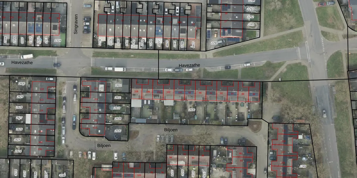 Het perceel waarop Havezathe 100 staat heeft een oppervlakte van 1807 m². Dit is een zeer groot perceel. De perceeloppervlakte wordt geregistreerd door het Kadaster. Gedetailleerde informatie over de maten van dit perceel kunt u vinden in het rapport Kadastrale kaart met maatvoering van Havezathe 100.