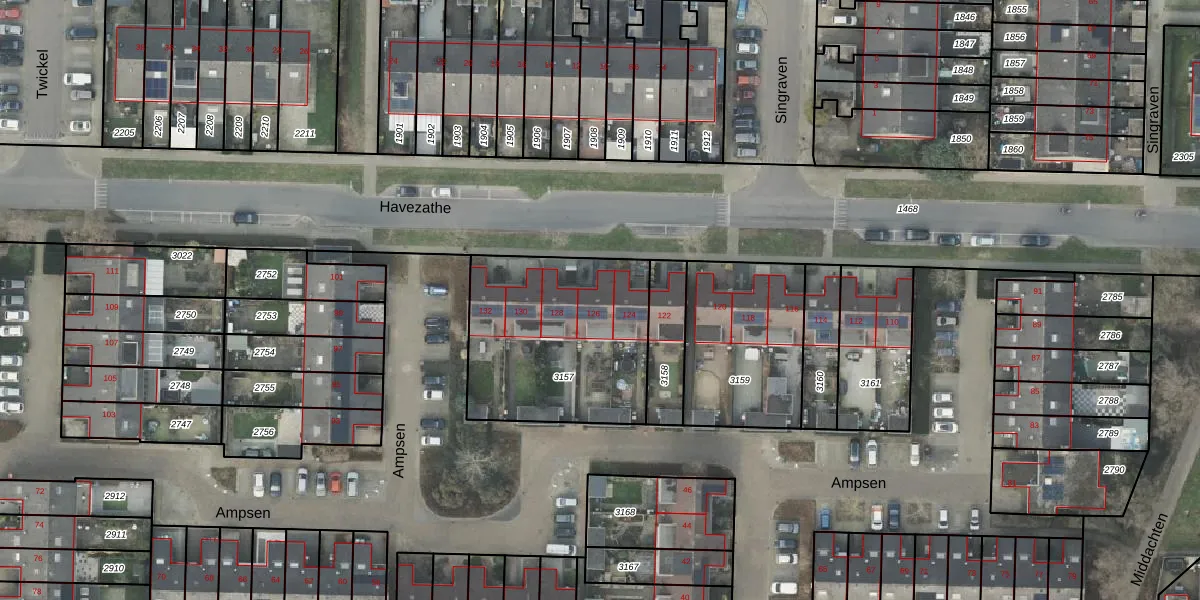 Het perceel waarop Havezathe 126 staat heeft een oppervlakte van 823 m². Dit is een groot perceel. De perceeloppervlakte wordt geregistreerd door het Kadaster. Gedetailleerde informatie over de maten van dit perceel kunt u vinden in het rapport Kadastrale kaart met maatvoering van Havezathe 126.
