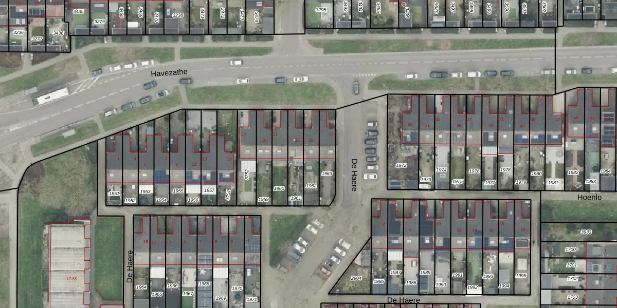 Het perceel waarop Havezathe 25 staat heeft een oppervlakte van 160 m². Dit is een middelgroot perceel. De perceeloppervlakte wordt geregistreerd door het Kadaster. Gedetailleerde informatie over de maten van dit perceel kunt u vinden in het rapport Kadastrale kaart met maatvoering van Havezathe 25.