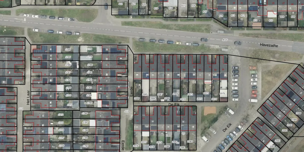 Het perceel waarop Havezathe 77 staat heeft een oppervlakte van 158 m². Dit is een middelgroot perceel. De perceeloppervlakte wordt geregistreerd door het Kadaster. Gedetailleerde informatie over de maten van dit perceel kunt u vinden in het rapport Kadastrale kaart met maatvoering van Havezathe 77.