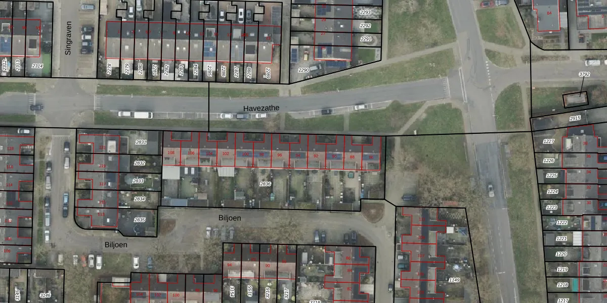 Het perceel waarop Havezathe 94 staat heeft een oppervlakte van 1807 m². Dit is een zeer groot perceel. De perceeloppervlakte wordt geregistreerd door het Kadaster. Gedetailleerde informatie over de maten van dit perceel kunt u vinden in het rapport Kadastrale kaart met maatvoering van Havezathe 94.