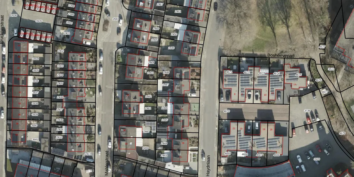 Gebruik de zoekbalk of klik op een perceel voor informatie over de adressen binnen dit perceel.