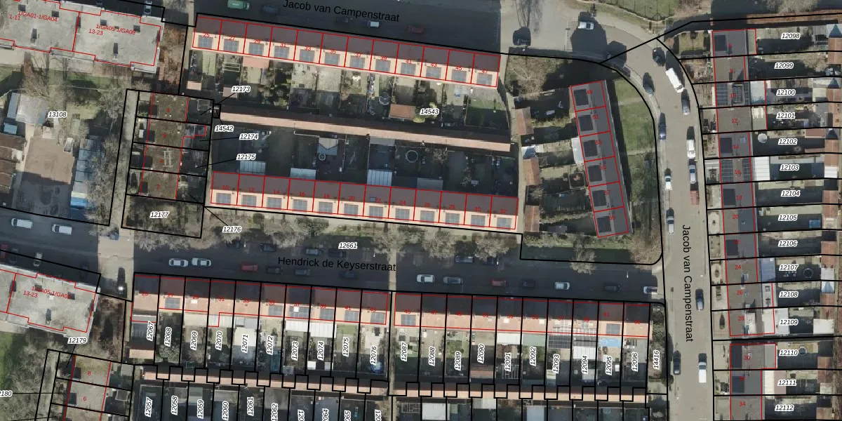 Het perceel waarop Hendrick de Keyserstraat 26 staat heeft een oppervlakte van 4857 m². Dit is een zeer groot perceel. De perceeloppervlakte wordt geregistreerd door het Kadaster. Gedetailleerde informatie over de maten van dit perceel kunt u vinden in het rapport Kadastrale kaart met maatvoering van Hendrick de Keyserstraat 26.