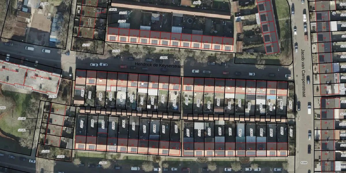 Het perceel waarop Hendrick de Keyserstraat 43 staat heeft een oppervlakte van 167 m². Dit is een middelgroot perceel. De perceeloppervlakte wordt geregistreerd door het Kadaster. Gedetailleerde informatie over de maten van dit perceel kunt u vinden in het rapport Kadastrale kaart met maatvoering van Hendrick de Keyserstraat 43.