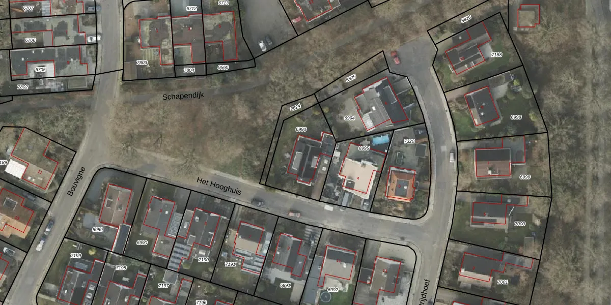 Het perceel waarop Het Hooghuis 2 staat heeft een oppervlakte van 477 m². Dit is een groot perceel. De perceeloppervlakte wordt geregistreerd door het Kadaster. Gedetailleerde informatie over de maten van dit perceel kunt u vinden in het rapport Kadastrale kaart met maatvoering van Het Hooghuis 2.