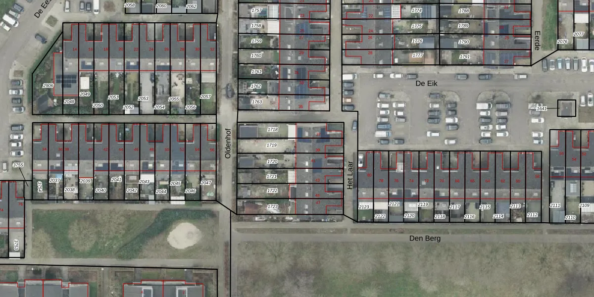 Gebruik de zoekbalk of klik op een perceel voor informatie over de adressen binnen dit perceel.