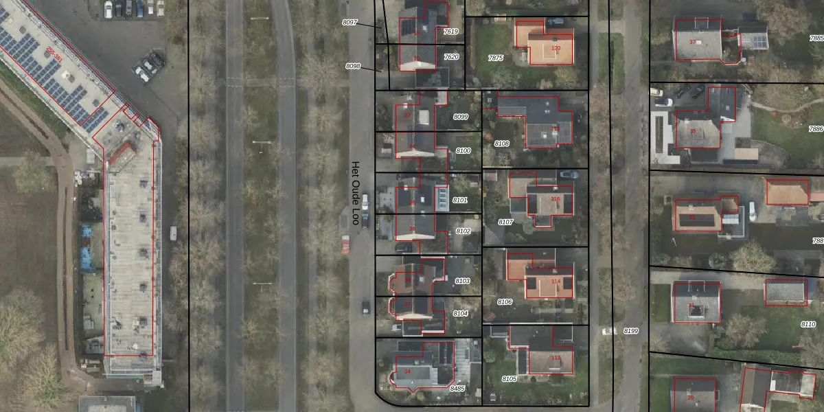 Gebruik de zoekbalk of klik op een perceel voor informatie over de adressen binnen dit perceel.