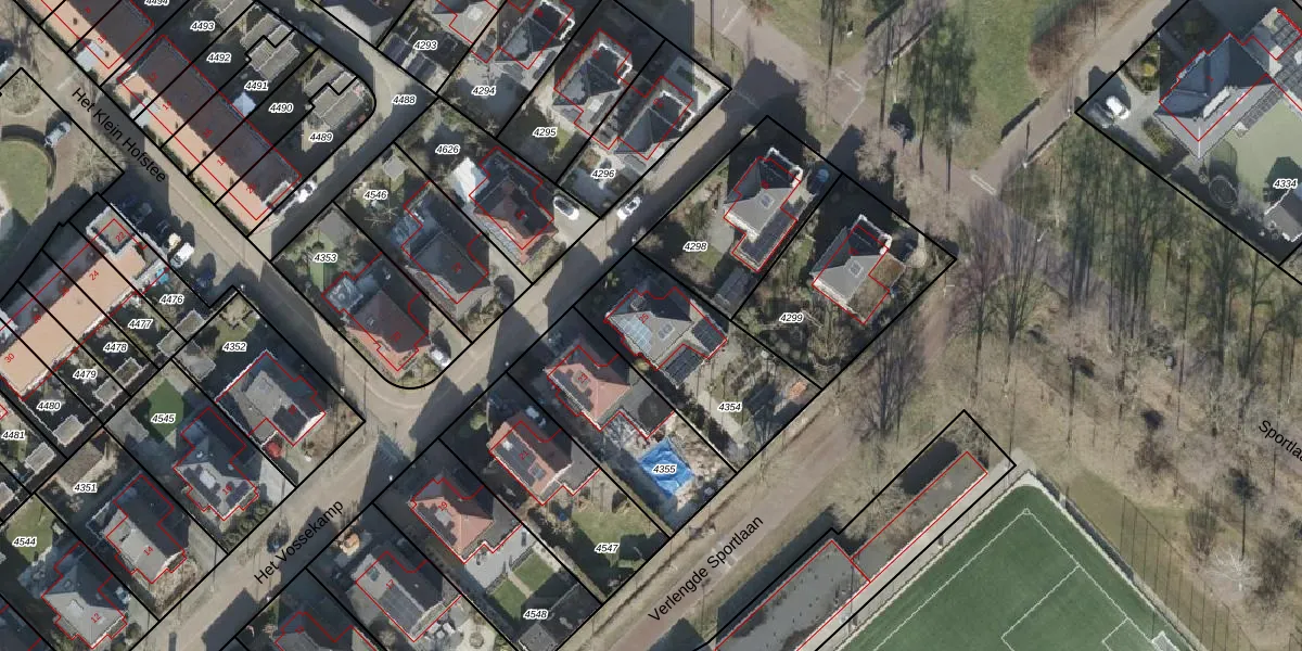 Het perceel waarop Het Vossekamp 25 staat heeft een oppervlakte van 565 m². Dit is een groot perceel. De perceeloppervlakte wordt geregistreerd door het Kadaster. Gedetailleerde informatie over de maten van dit perceel kunt u vinden in het rapport Kadastrale kaart met maatvoering van Het Vossekamp 25.
