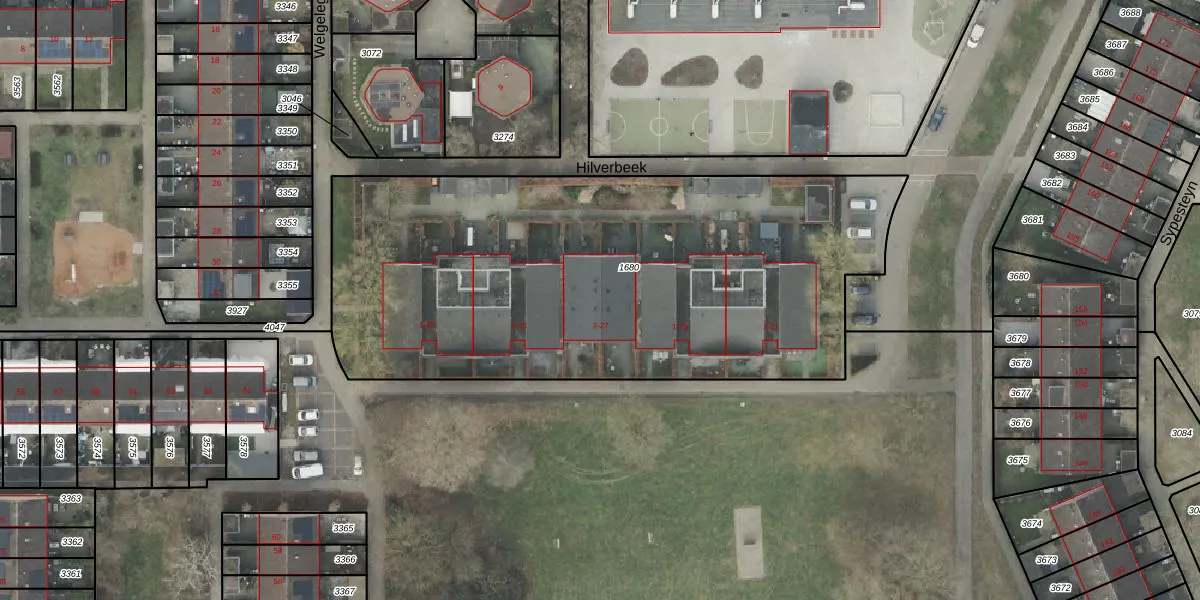 Het perceel waarop Hilverbeek 1 staat heeft een oppervlakte van 3022 m². Dit is een zeer groot perceel. De perceeloppervlakte wordt geregistreerd door het Kadaster. Gedetailleerde informatie over de maten van dit perceel kunt u vinden in het rapport Kadastrale kaart met maatvoering van Hilverbeek 1.