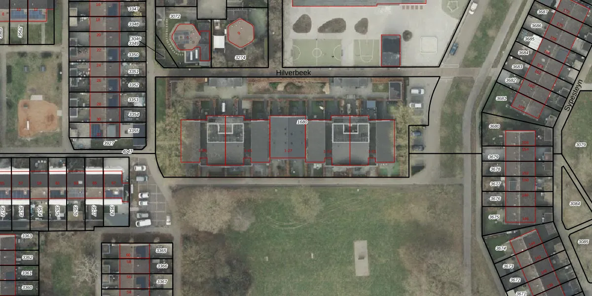 Het perceel waarop Hilverbeek 15 staat heeft een oppervlakte van 3022 m². Dit is een zeer groot perceel. De perceeloppervlakte wordt geregistreerd door het Kadaster. Gedetailleerde informatie over de maten van dit perceel kunt u vinden in het rapport Kadastrale kaart met maatvoering van Hilverbeek 15.