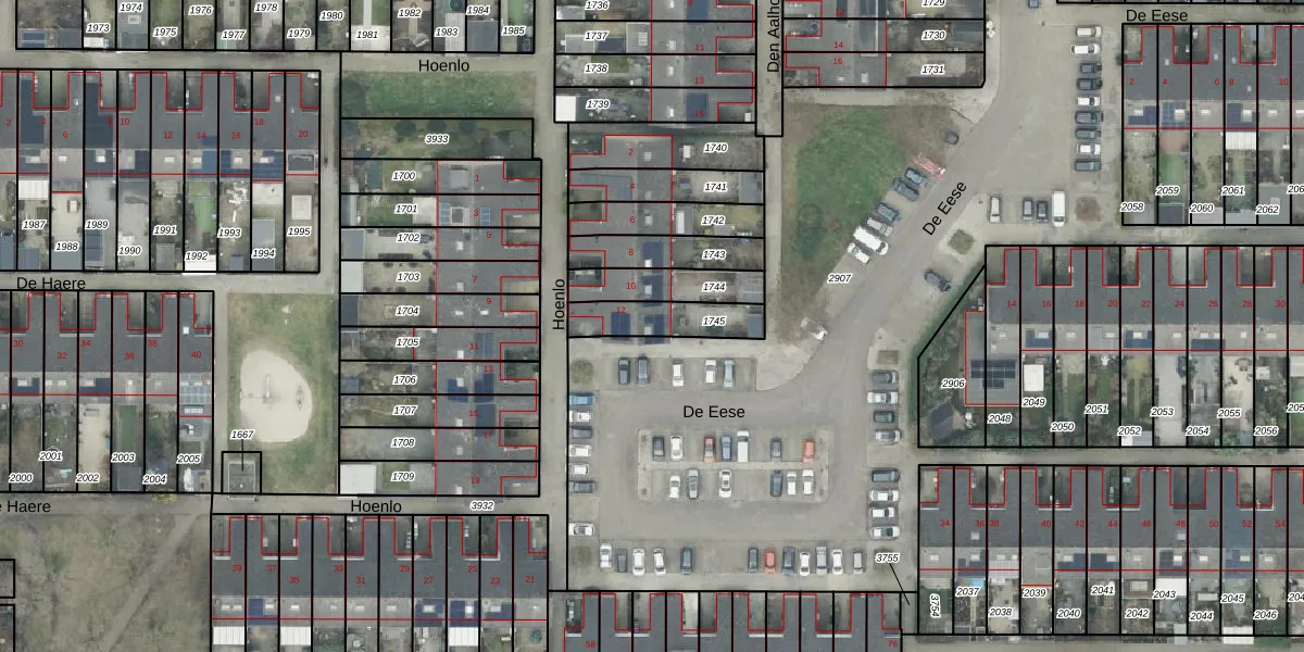 Het perceel waarop Hoenlo 12 staat heeft een oppervlakte van 162 m². Dit is een middelgroot perceel. De perceeloppervlakte wordt geregistreerd door het Kadaster. Gedetailleerde informatie over de maten van dit perceel kunt u vinden in het rapport Kadastrale kaart met maatvoering van Hoenlo 12.