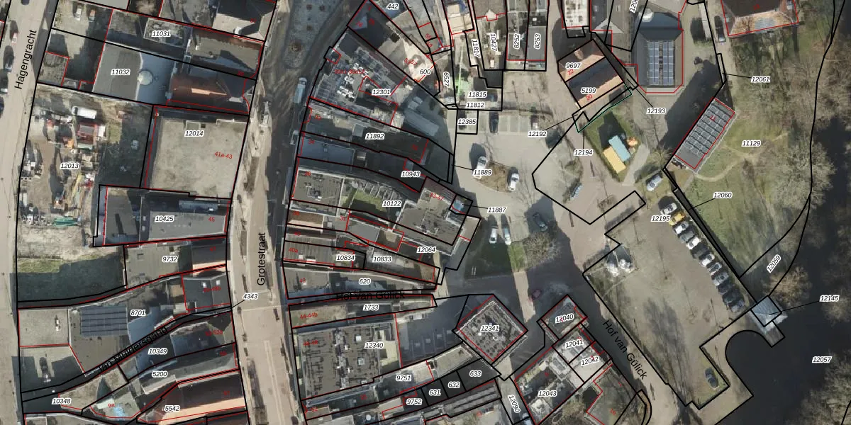 Het perceel waarop Hof van Gülick 45 staat heeft een oppervlakte van 428 m². Dit is een groot perceel. De perceeloppervlakte wordt geregistreerd door het Kadaster. Gedetailleerde informatie over de maten van dit perceel kunt u vinden in het rapport Kadastrale kaart met maatvoering van Hof van Gülick 45.
