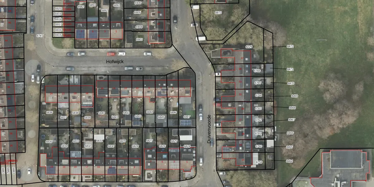 Het perceel waarop Hofwijck 2 staat heeft een oppervlakte van 280 m². Dit is een middelgroot perceel. De perceeloppervlakte wordt geregistreerd door het Kadaster. Gedetailleerde informatie over de maten van dit perceel kunt u vinden in het rapport Kadastrale kaart met maatvoering van Hofwijck 2.