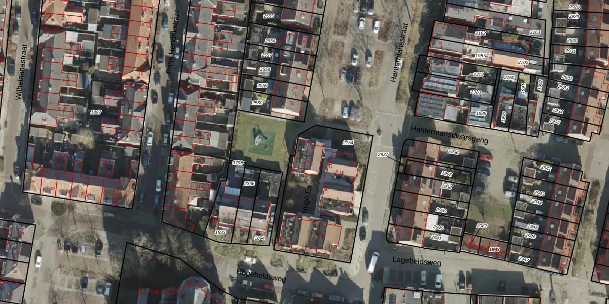 Het perceel waarop Hoge Es 19 staat heeft een oppervlakte van 1063 m². Dit is een zeer groot perceel. De perceeloppervlakte wordt geregistreerd door het Kadaster. Gedetailleerde informatie over de maten van dit perceel kunt u vinden in het rapport Kadastrale kaart met maatvoering van Hoge Es 19.