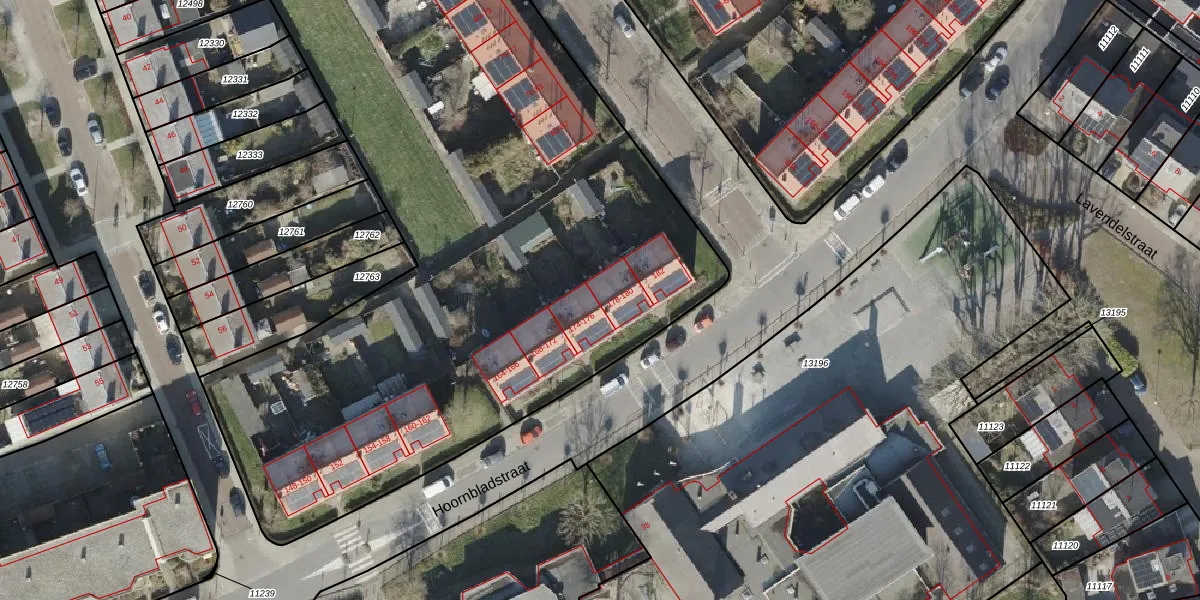 Het perceel waarop Hoornbladstraat 178 staat heeft een oppervlakte van 8510 m². Dit is een zeer groot perceel. De perceeloppervlakte wordt geregistreerd door het Kadaster. Gedetailleerde informatie over de maten van dit perceel kunt u vinden in het rapport Kadastrale kaart met maatvoering van Hoornbladstraat 178.