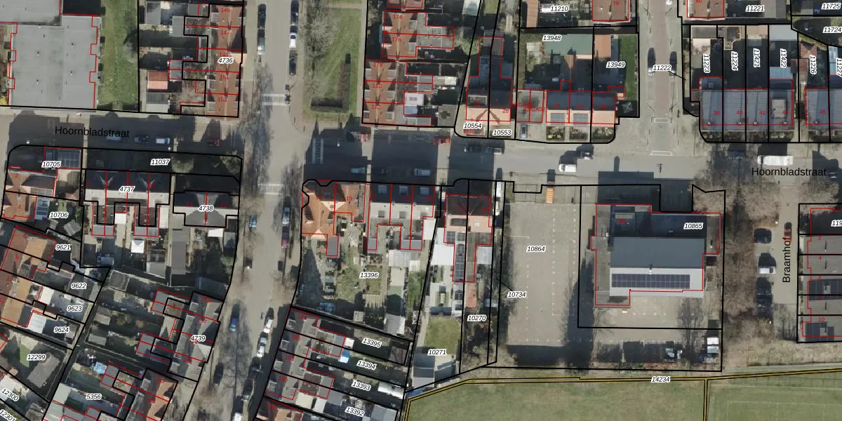 Hoornbladstraat 25 is gelegen op kadastraal perceel AML01H13396. Deze kadastrale aanduiding is uniek en wordt gebruikt door het Kadaster om eigendomsrechten en andere zakelijke rechten vast te leggen. Het perceel maakt onderdeel uit van de kadastrale gemeente Ambt-Almelo.