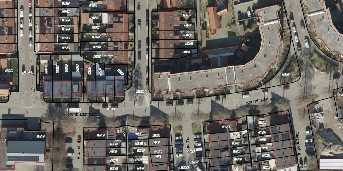 Het perceel waarop Hoornbladstraat 70 staat heeft een oppervlakte van 8447 m². Dit is een zeer groot perceel. De perceeloppervlakte wordt geregistreerd door het Kadaster. Gedetailleerde informatie over de maten van dit perceel kunt u vinden in het rapport Kadastrale kaart met maatvoering van Hoornbladstraat 70.