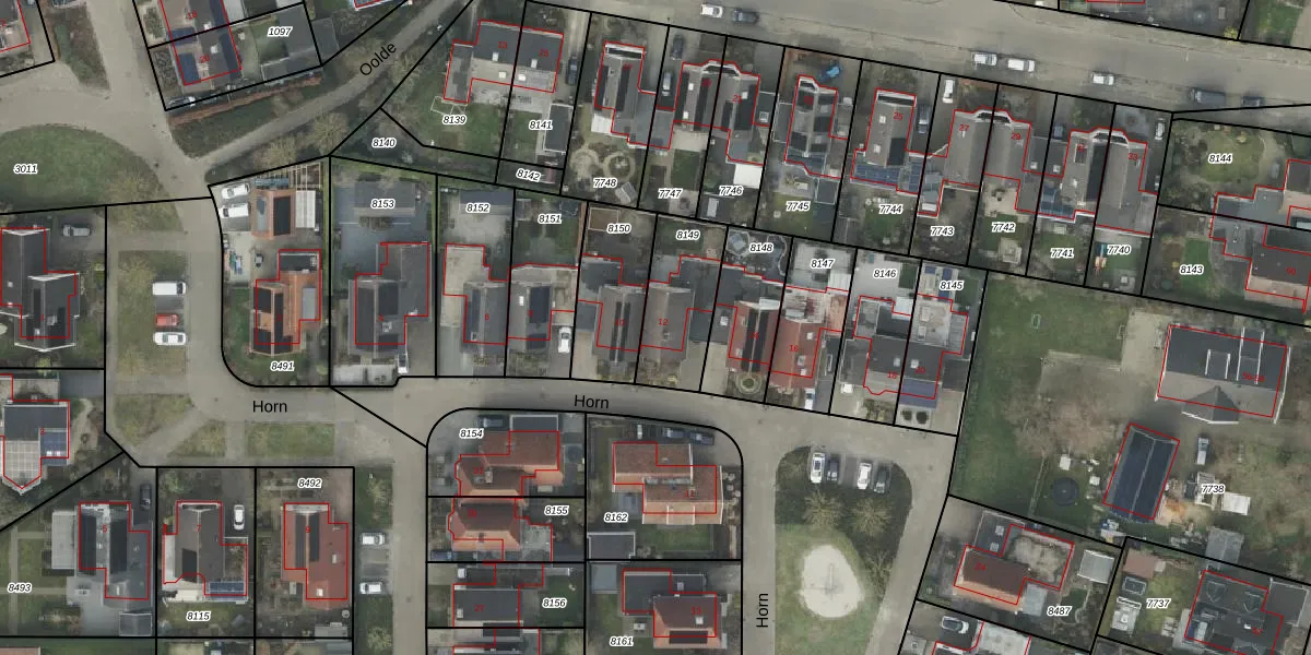 Het perceel waarop Horn 12 staat heeft een oppervlakte van 274 m². Dit is een middelgroot perceel. De perceeloppervlakte wordt geregistreerd door het Kadaster. Gedetailleerde informatie over de maten van dit perceel kunt u vinden in het rapport Kadastrale kaart met maatvoering van Horn 12.