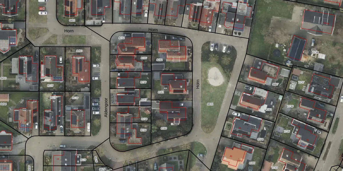 Het perceel waarop Horn 13 staat heeft een oppervlakte van 407 m². Dit is een groot perceel. De perceeloppervlakte wordt geregistreerd door het Kadaster. Gedetailleerde informatie over de maten van dit perceel kunt u vinden in het rapport Kadastrale kaart met maatvoering van Horn 13.