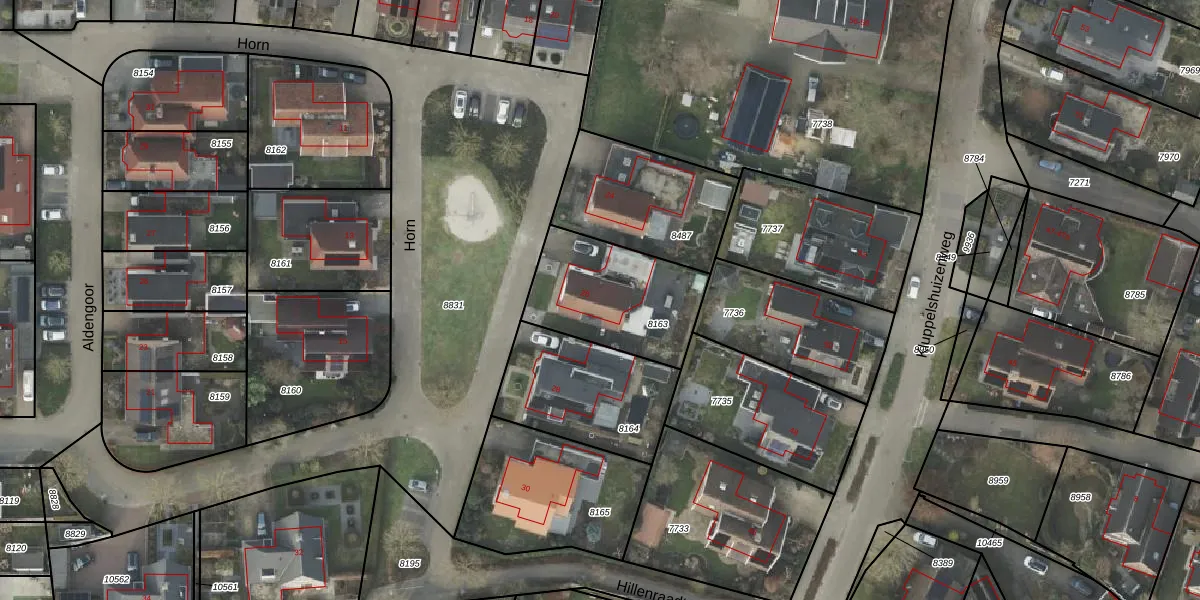 Het perceel waarop Horn 26 staat heeft een oppervlakte van 466 m². Dit is een groot perceel. De perceeloppervlakte wordt geregistreerd door het Kadaster. Gedetailleerde informatie over de maten van dit perceel kunt u vinden in het rapport Kadastrale kaart met maatvoering van Horn 26.