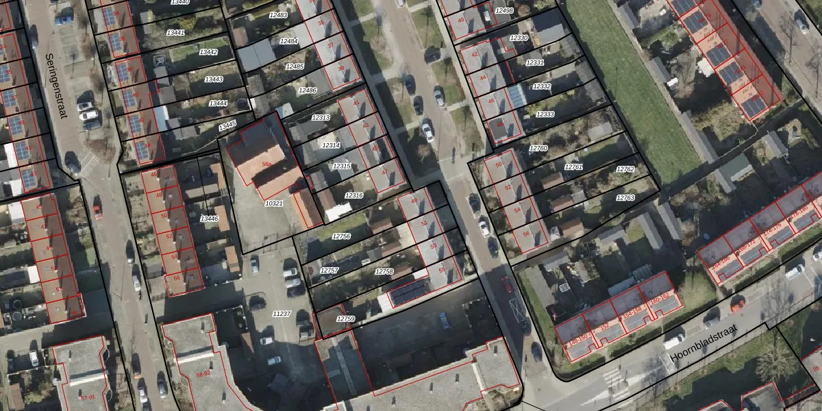 Gebruik de zoekbalk of klik op een perceel voor informatie over de adressen binnen dit perceel.