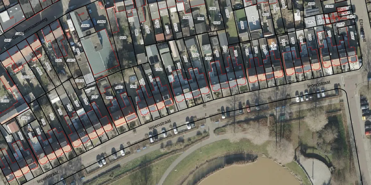 Het perceel waarop Iepenstraat 37 staat heeft een oppervlakte van 169 m². Dit is een middelgroot perceel. De perceeloppervlakte wordt geregistreerd door het Kadaster. Gedetailleerde informatie over de maten van dit perceel kunt u vinden in het rapport Kadastrale kaart met maatvoering van Iepenstraat 37.